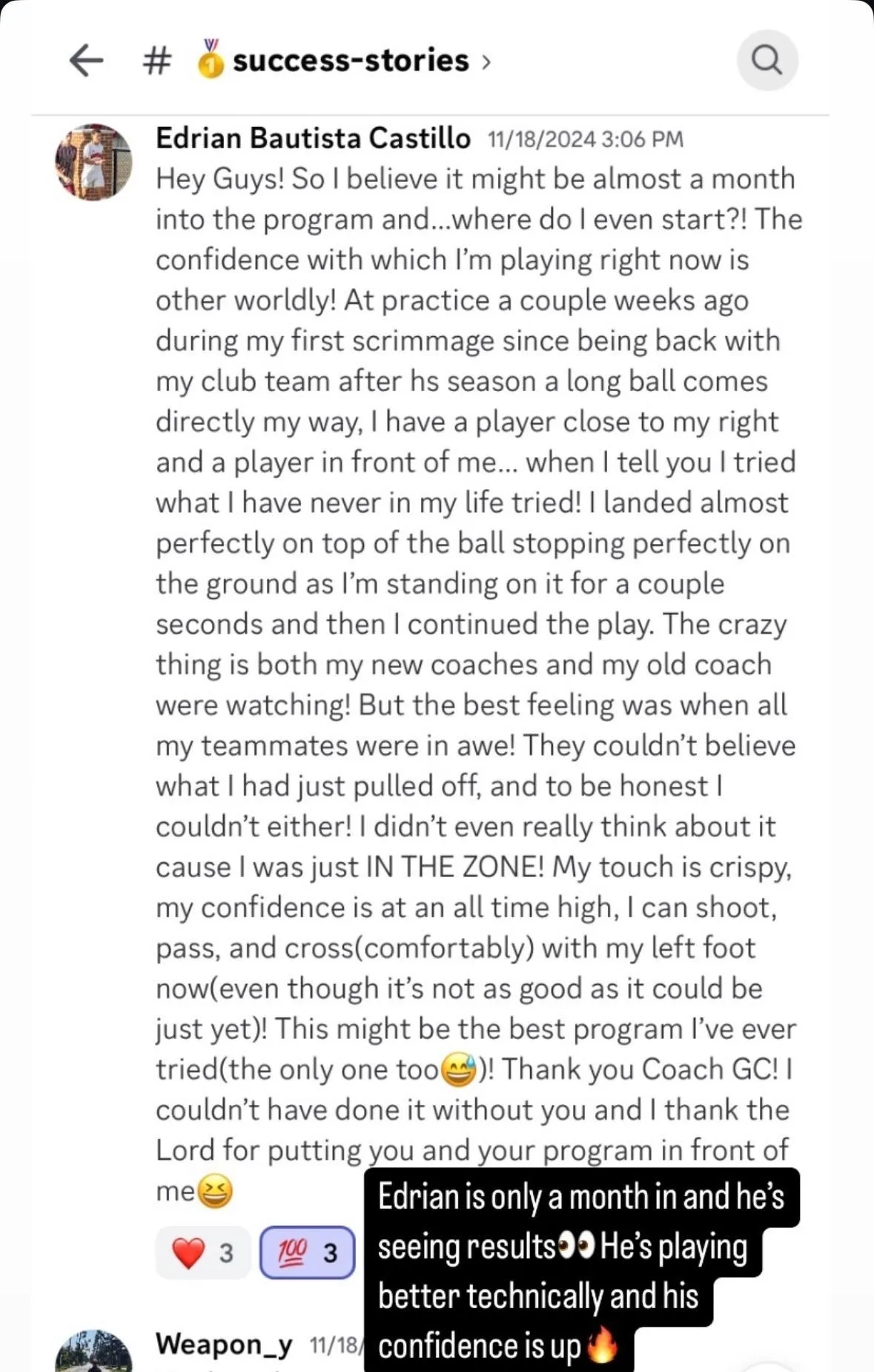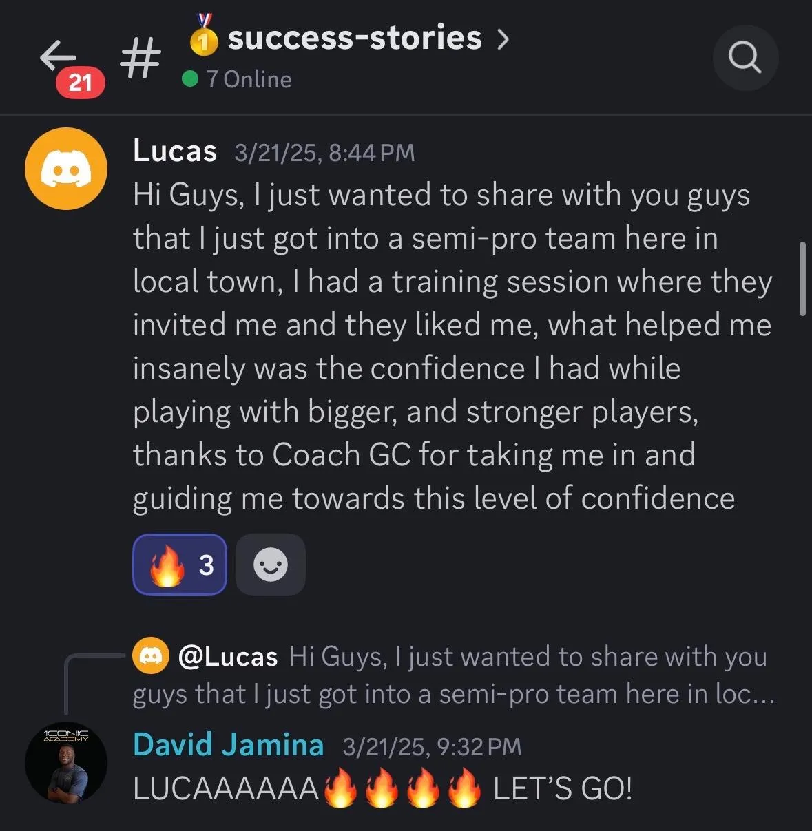 "I can't thank Coach David and Coach Jacob enough for this!"